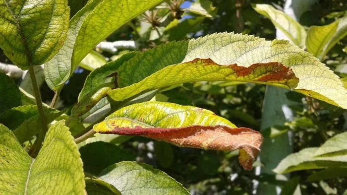 Краснеющие листья на яблоне могут сигнализировать о дефиците питательных веществ. Фото: из открытых источников
